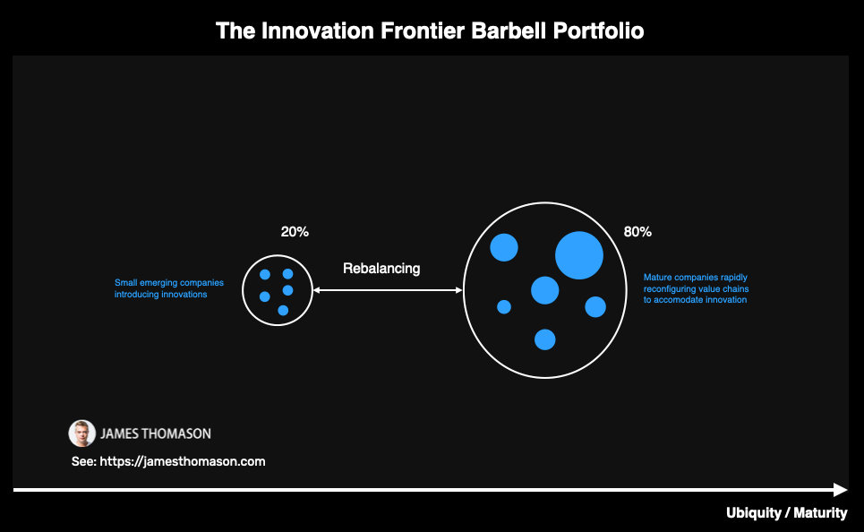 This framework translates observable innovation frontiers into an investable barbell strategy between two replicable cohorts. The downstream establishment base dampens volatility from speculative individual startups, while small upside concentrations contain reward asymmetry. Just as technology transitions prove that no inertia lasts forever, no insurgent remains an upstart indefinitely either to warrant isolationist strategies.