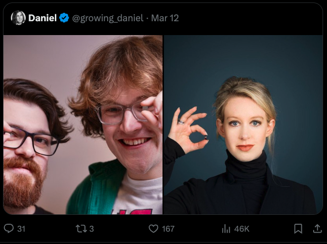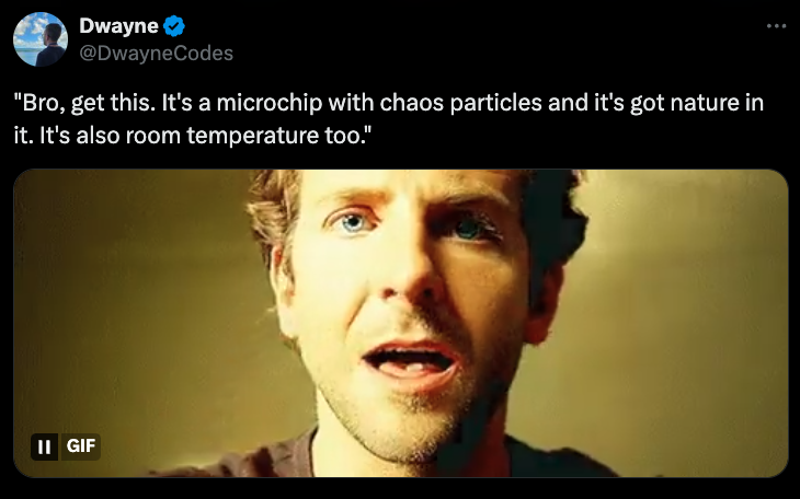 But I also think it's totally unfair to compare Extropic to Theranos. Totally, totally, totally, totally unfair.